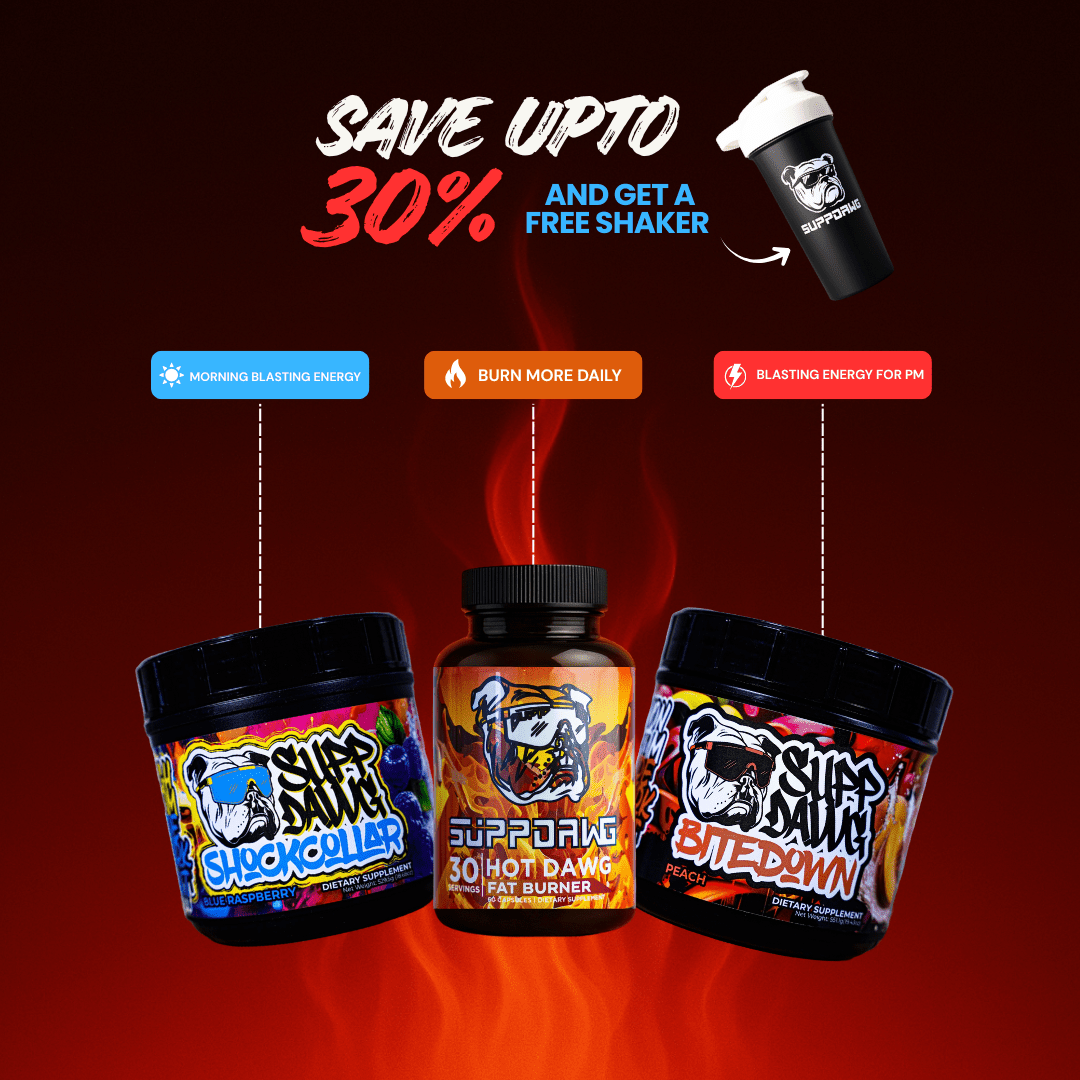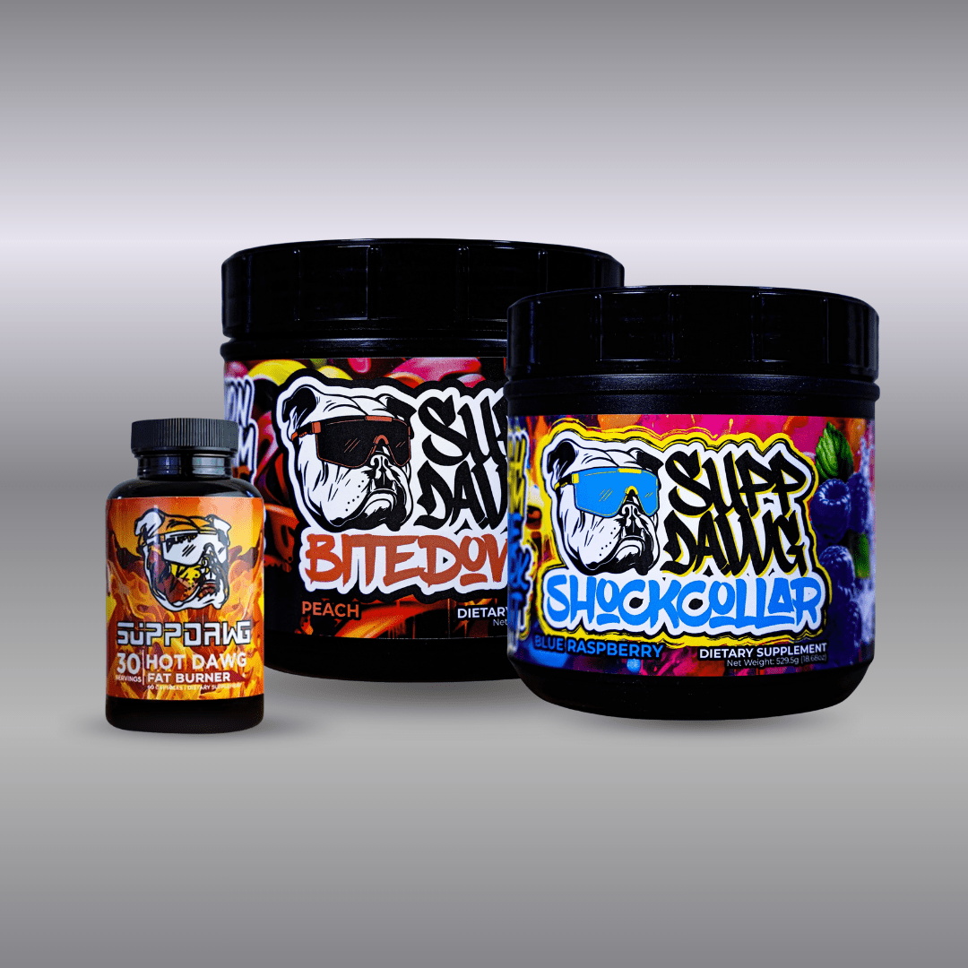 This is your go-to bundle for intense fat-loss phases, combining aggressive pre-workout support with flexible stim cycling and daily fat-burning power. Use Shock Collar to push limits, Bite Down to stay consistent, and the Fat Burner to stay in the zone every day.